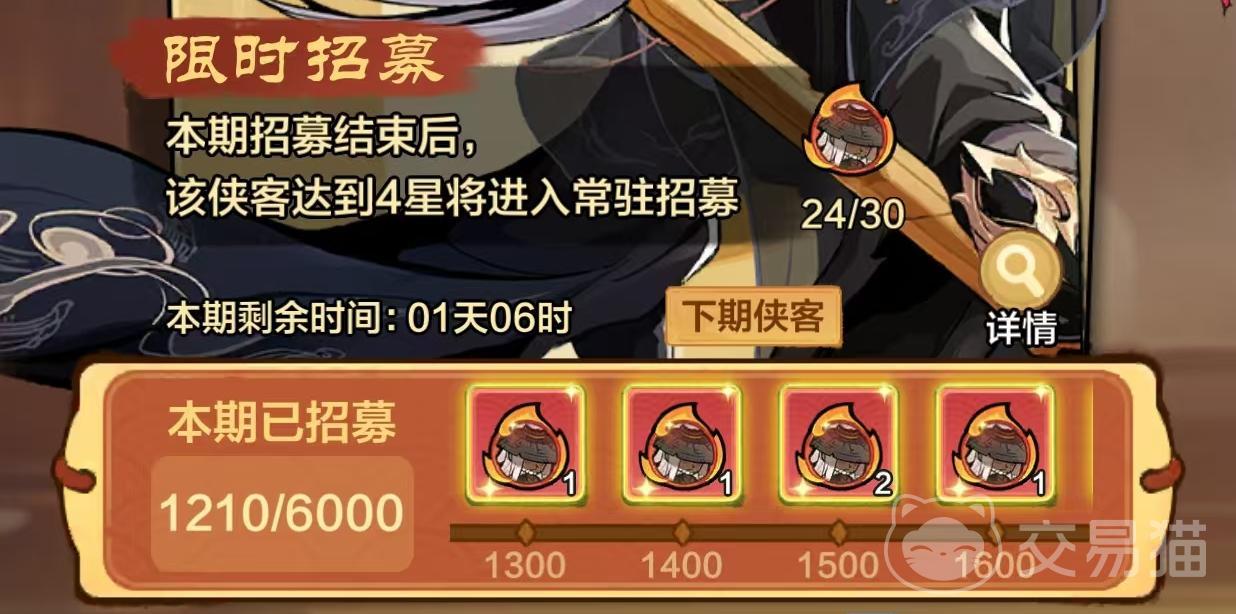 倘若玩家想获得绝世剑尊,便只能通过消耗道具进行招募,在进行招募时玩家会有0.7%的概率获得绝世剑尊武魂,在获得30个绝世剑尊武魂后,便可获得这一侠客。除此之外,招募次数达到相应目标后也能获得武魂,从而加快获取绝世剑尊的速度。因为绝世剑尊属于限时招募获取的武侠,倘若玩家没有获取该角色,便只能等待他返厂后再进行招募。