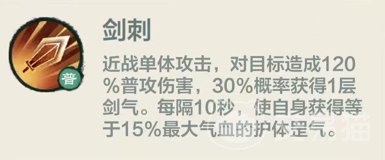 作为神话+的侠客,即使是普通攻击也有着极高的强度,每次攻击都有概率获得“剑气”,来不断提升技能伤害,并且每隔10秒获得的护体罡气,极大的提高了作为绝世剑尊的生存能力。