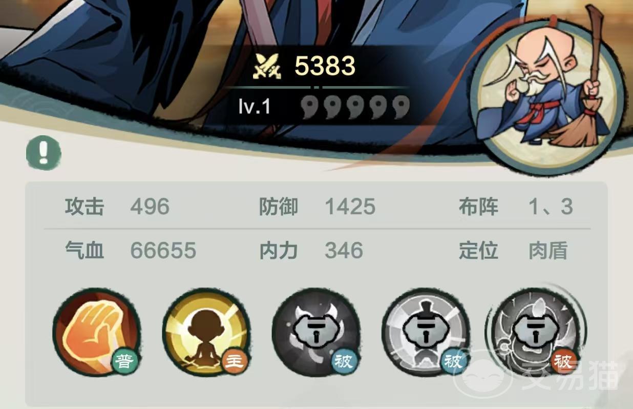 而在前排肉盾的选择上,卧龙僧是不错的选择。被动技能“涅槃”的存在使得其即使重伤也有着再战的机会,重伤后的他会原地入定并且回复部分血量,当血量回复至60%便会重返战斗并且对周围角色造成伤害。而“佛怒金刚”这一被动技能则使卧龙僧在挨打时,能够为场上血量最低的侠客回复血量,为其余角色提供了良好的输出环境。