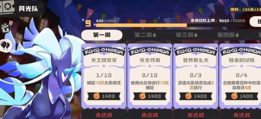 这个通行证的等级提升的话,则是需要玩家们按照周次,每一周会给玩家们分配一些任务,玩家们通过给出的任务要求,去进行挑战,就可以获得大量的经验和精灵果实!