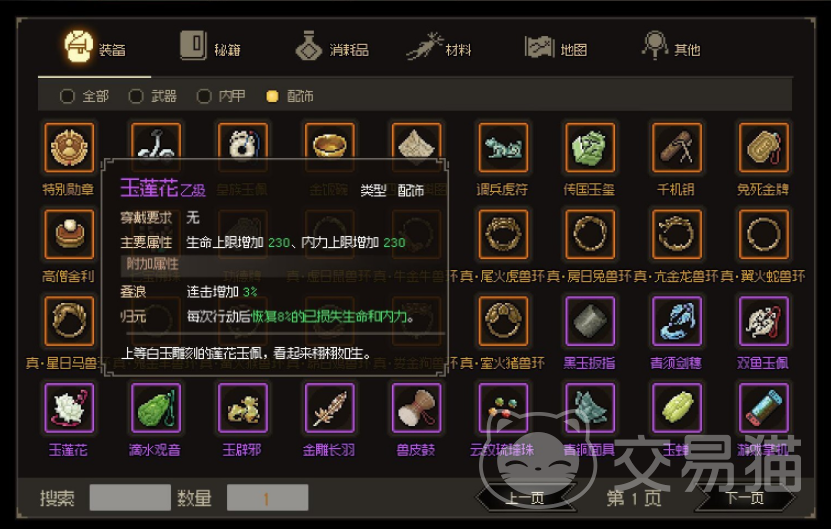 在大侠立志传这个游戏里,除了一些饰品之外,还会有大量的武器和武功可以进行学习和使用,可以借助这些额外的武功和武器提升自身的能力,这样才能更好地闯荡江湖,喜欢大侠立志传的可以在游戏里多去完成任务,这样才能获得更多附加的饰品和道具,从而能让角色能力得到极大的提升。
