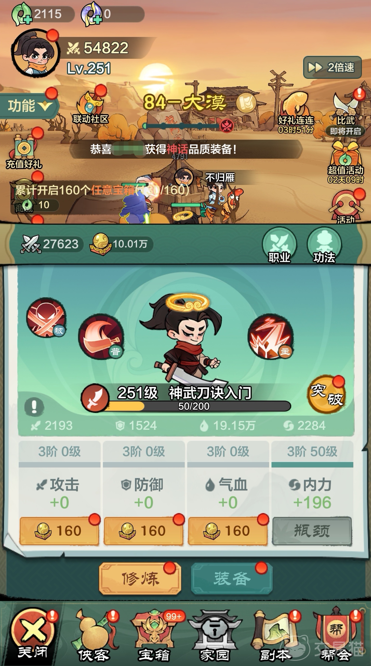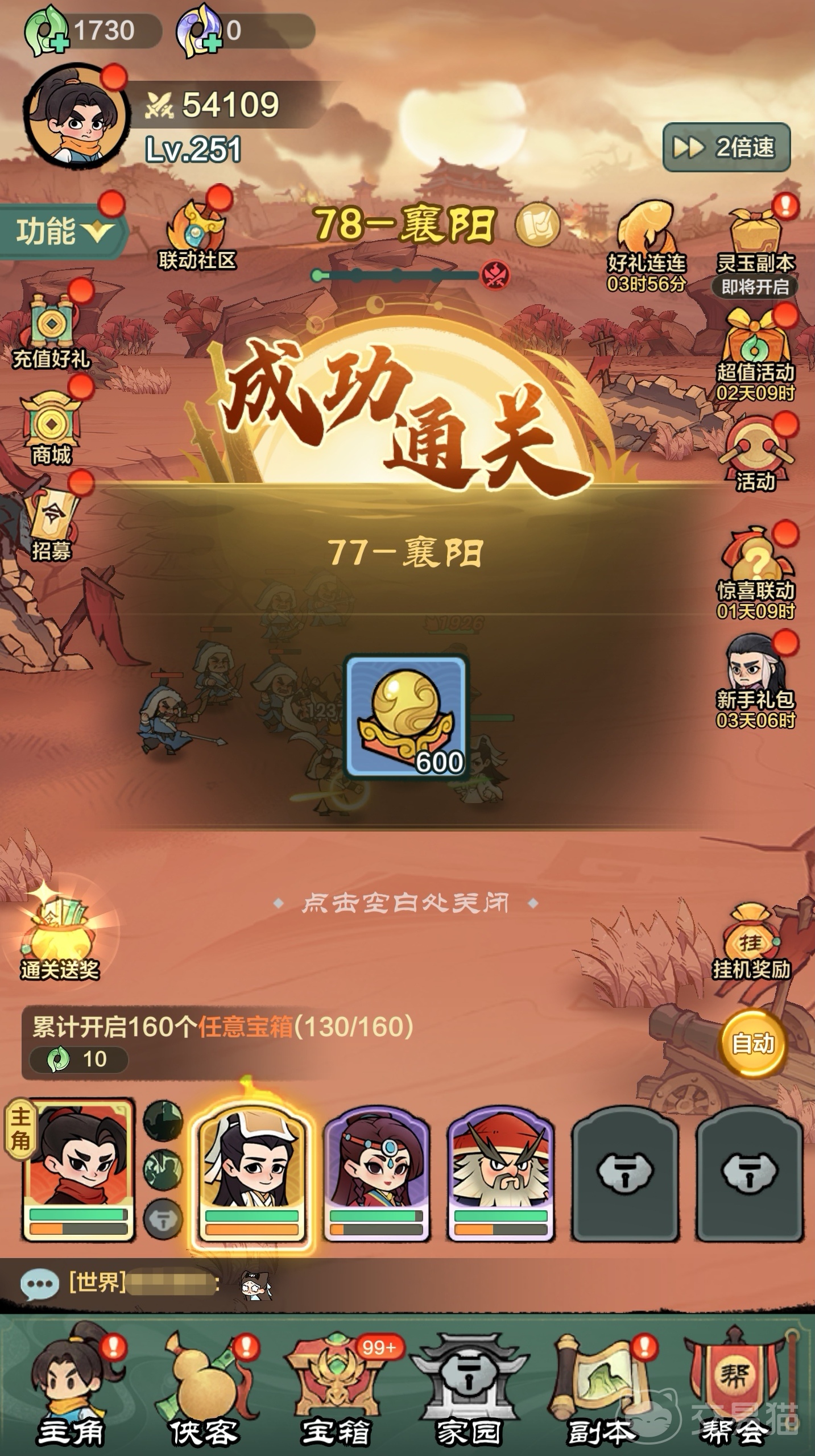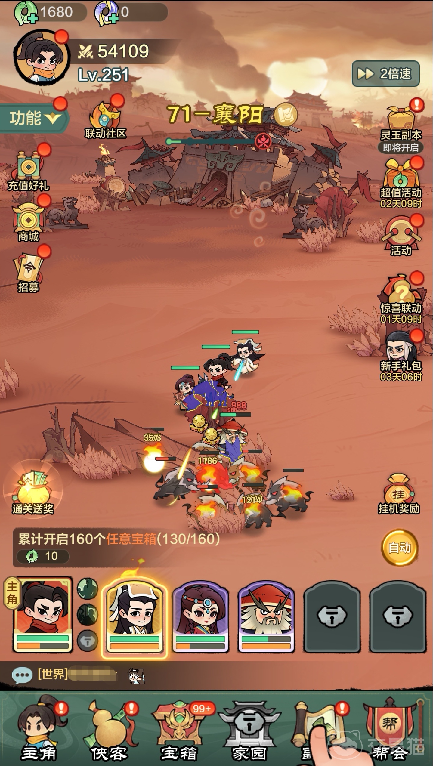 游戏内含有许多关卡,分为了小关和大关,每通关五个小型关卡就会碰上一个大型BOSS,届时玩家需要集中火力去发动攻击,每通过一个新的关卡,就会向大家发放一定数量的修为作为奖品。