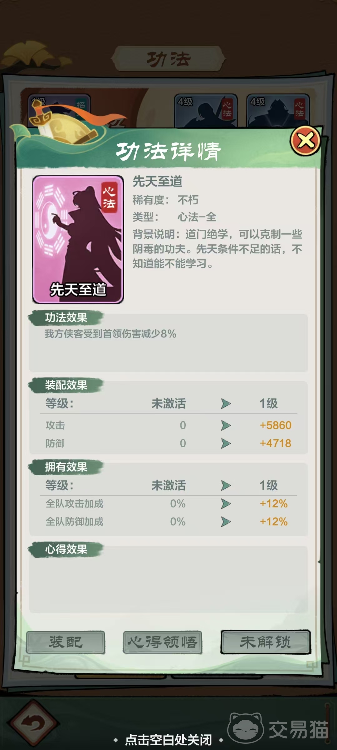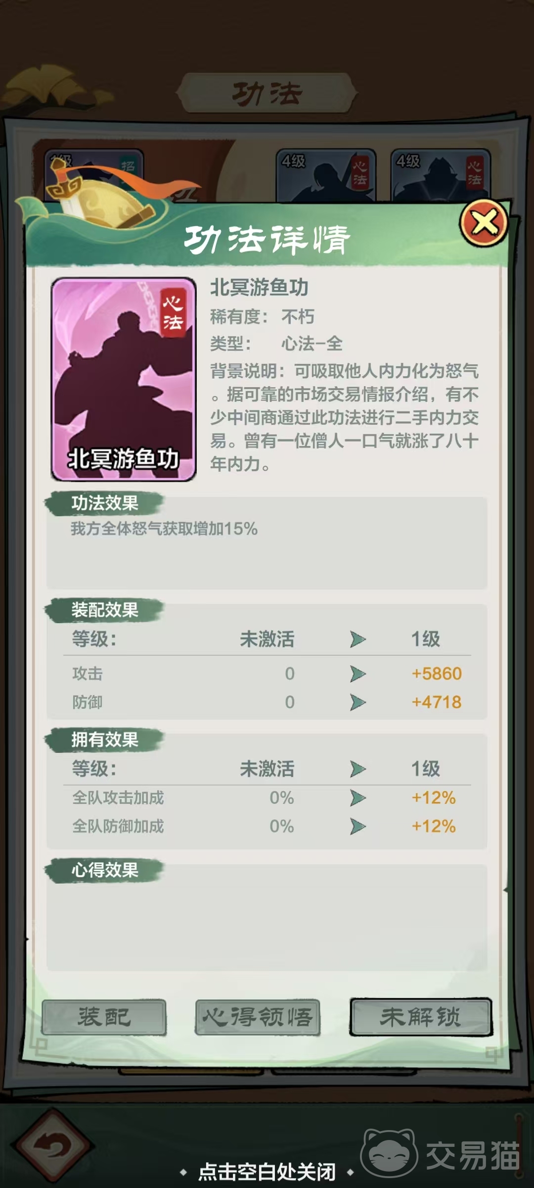 先天至道的效果是使得我方受到首领级别怪物的伤害减少8%,虽然不是所有伤害都能减少,但是在闯关过程中首领是最难缠的战斗,减少了首领造成的伤害,也就相当于增加了闯关可能性。北冥游鱼功,使得我方全体怒气获取增加15%,小编认为在众多心法中,北冥游鱼功绝对是最受大家欢迎的一个,对于任何流派来说,怒气都是最关键资源,有了怒气才能释放技能。具有相似效果的还有另一个紫极天功,它也是增加怒气获取,但只能增加8%,是北冥游鱼功的替代品。