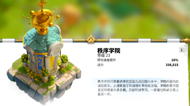 秩序大厅等级变高后,不仅其他建筑和功能会跟着解锁,玩家还能派出更多的部队,所以一定要集中资源优先进行,等提升完秩序大厅后就可以开始对学院的建设了,升级学院能有效提升研究速度,减少研究加速带来的损耗。