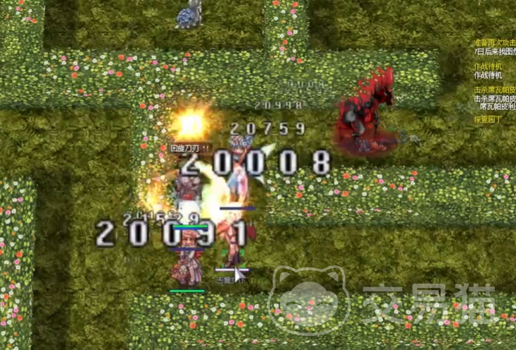 之后就会来到花地,这个花地上有很多的精灵怪物,这些怪物的血量不高,适用范围的aoe攻击就能全部清理,不过这些怪物一开始是分散的,所以需要拉扯一下,尽量将其拉到玩家的周围,方便清理。