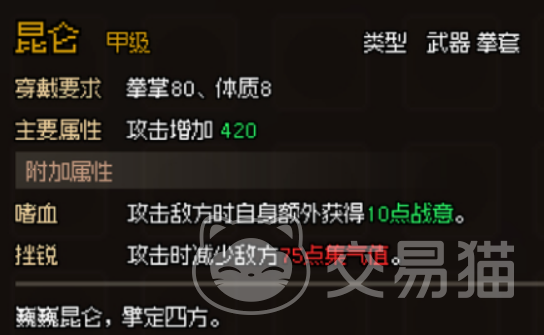 大侠立志传甲级拳套介绍 大侠立志传甲级拳套大全