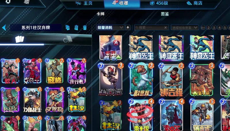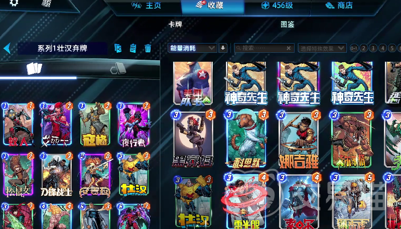 在角色的选择上非常推荐死侍和金刚狼,死侍这张卡牌被摧毁的时候能够获得战斗力翻倍的效果,并且会重新回到卡组当中,等于说可以免费获得两倍的基础战斗力,虽然死侍这张卡牌的基础属性非常低,但是它的增长率很高,金刚狼这个角色同理,每一次被摧毁的时候都会随机生成在场的任意一个位置,并且获得两倍的基础战斗力。