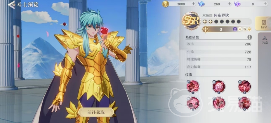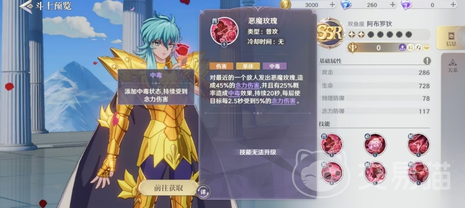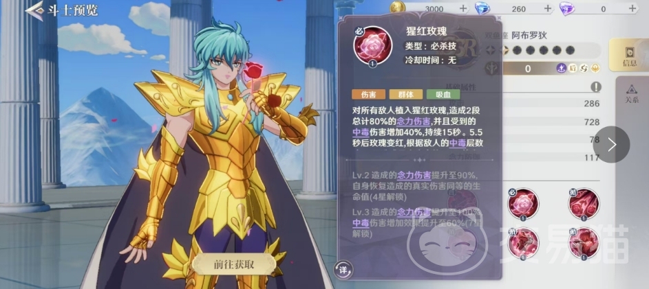 圣斗士星矢重生2双鱼座斗士是谁大家知道吗?如果大家有看过原著,其实在游戏中也是可以找到原著当中熟悉的圣斗士们,在游戏中双鱼座斗士就是阿布罗狄,他被定位为中排物理辅助角色,他不仅具备对植物毒性的抗性,还拥有独特的能力,大家可以通过下面的介绍来一起查看这个角色的效果哦。