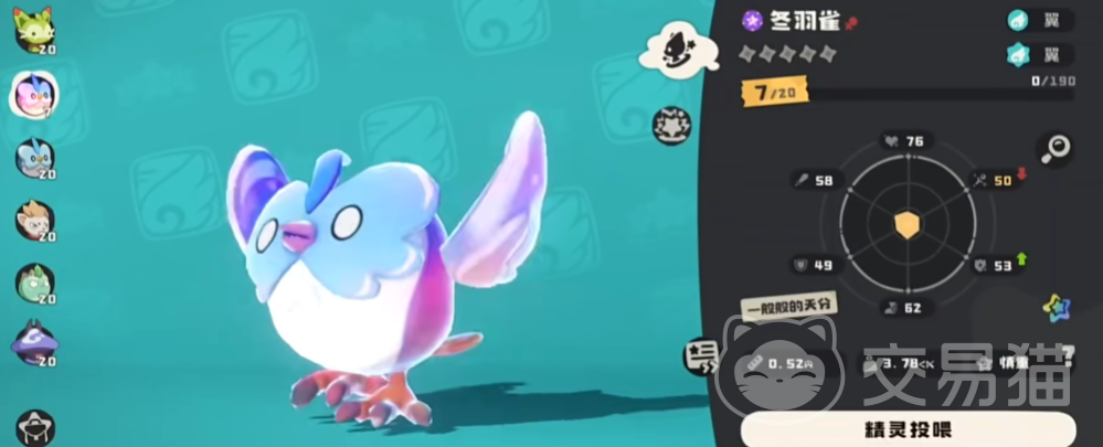 在强度方面,冬羽雀虽然不是顶级的战斗精灵,但其均衡的属性和成长潜力使得它在初期至中期游戏中都能发挥重要作用。冬羽雀的速度和特攻属性较为突出,适合快速出手并给予对手有效打击。同时,其不错的生命值和防御力也保证了在战斗中的生存能力。在合理的技能搭配下,冬羽雀能够成为玩家队伍中的多面手,无论是单体输出还是群体控制都能有所作为。