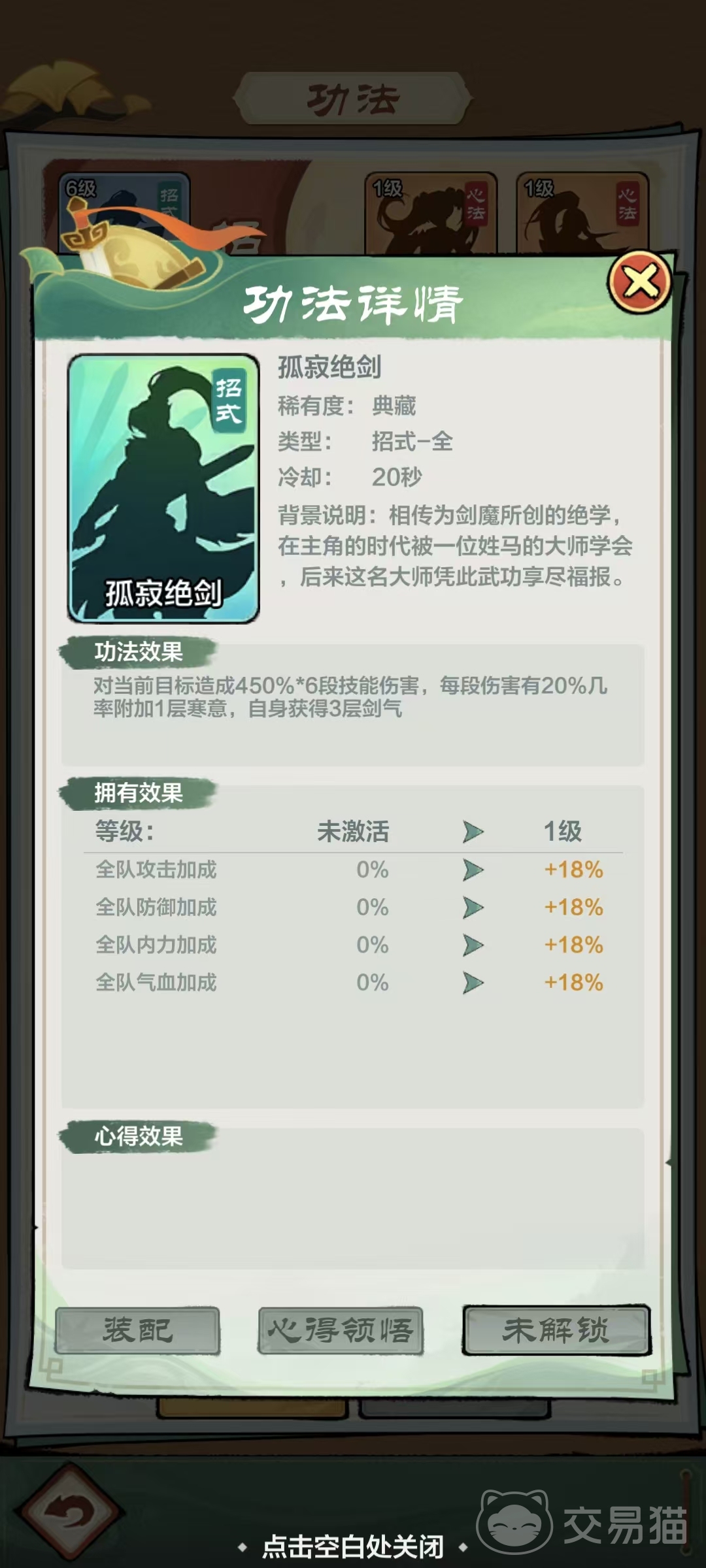 带大家了解了剑客的首选功法以后,为了避免大家不知道剑客最好的功法组合,小编也特意给大家准备一套非常不错的功法组合,主力输出功法选择孤寂绝剑在搭配上控场功法指剑神通、增加伤害buff的功法风起云涌、增加自身防御能力的功法金蟾坠、提高爆发能力的功法万剑归一,最后在使用可以加快怒气积累速度的功法日新月异。
