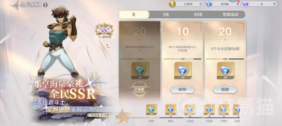 还有全名SSR的玩法,玩家通过完成任务目标可以获得蓝钻奖励和成长值加成,随着玩家完成更多的任务目标,累积的成长值也会逐渐增加,这一过程中,玩家每达到一定的成长值阶段,就能获得相应的进度奖励,提供了实质性的游戏内资源支持。