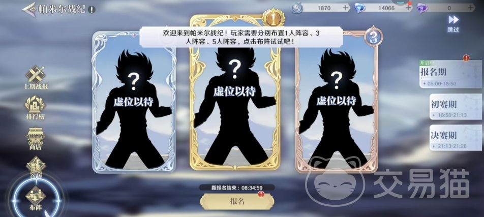 在报名过程中,玩家需要安排三场比赛的阵型,这些阵型分别需要上阵1个斗士、3个斗士和5个斗士。游戏会以玩家在报名时刻所持有的斗士与神器培养数据作为参赛依据。为了确保公平性,报名后玩家可以点击“同步”按钮来更新最新的养成数据。每个斗士在整个赛事中最多只能上阵一次,且在比赛开始前30秒内,玩家将无法调整斗士阵容。