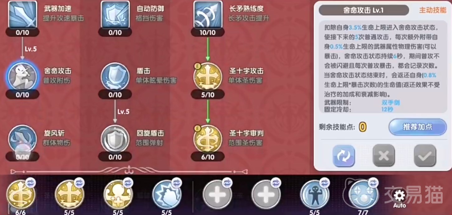 还有一种是是类似狂战士的十字军流派,技能要消耗自身血量来强化10次普攻,如果普攻触发了暴击会得到血量返还。因此这种玩法流派比较吃攻速和暴击,但输出空窗期大。