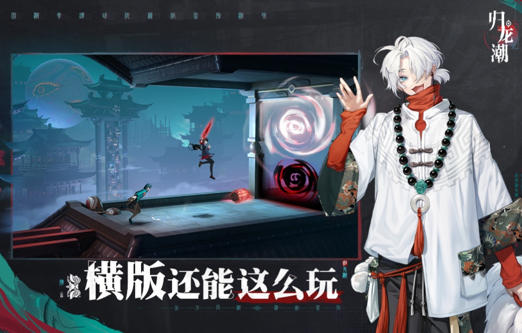 归龙潮中比较吸引人的就是以国风新怪谈为背景制作的世界,其中玩法是经典的横版动作冒险,在游戏中玩家将穿越到一个名为九龙城的架空世界,说是世界,但是其实出现的地图场景都是都市场景,在这里玩家将扮演一位电影导演,但任务并非拍摄电影,而是借拍片之名收集线索,揭露城市中隐藏的真相,同时可以招募来自不同势力的角色,与他们一同在这充满暗流的九龙城开启全新冒险。