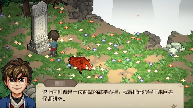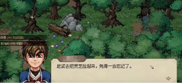 在探索迷踪林的过程中,右边有一棵粉色的大树,树下藏着一个灵芝。初见之下,这个灵芝似乎是一个意外之喜,但当你靠近时,四只野猪会突然出现,发起围攻。不要慌张,只需卡好位置逐个击破,这些野猪并不会对你构成太大威胁。而灵芝也是一个非常有价值的道具,后续的任务中将派上大用场,因此一定要记得收集。
