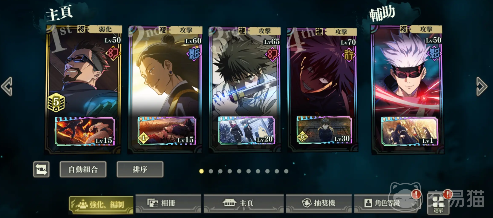 第二套的阵容成员有两面宿傩、里香、五条悟、乐岩寺和硝子,乐岩寺和硝子这两个人可以触发羁绊,为队伍提供净化和治疗的效果,避免被控制较多的敌人影响队伍的整体输出,还能在危机时刻进行回血。