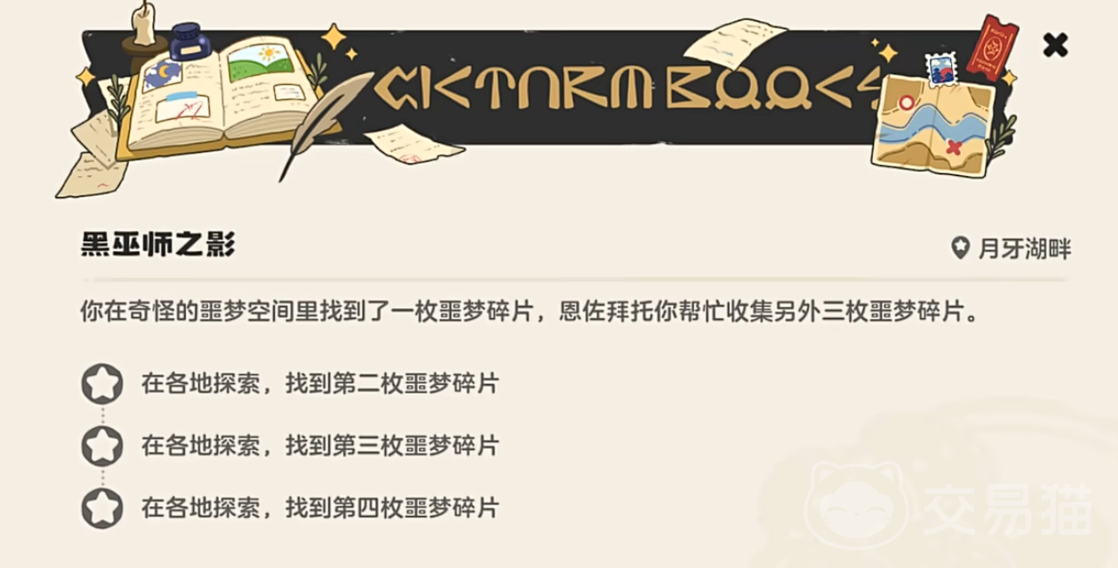 首先任务要求我们要前往游戏内的特定NPC处接取“黑巫师之影”任务。NPC会向玩家介绍任务的背景:噩梦空间内找到了一个噩梦碎片,而这个npc也就是恩佐想要我们去找另外三个噩梦碎片,其实它们就藏在世界的3个角落,我们需要在如图位置做标记,然后只要找对位置就能发现有一道光柱立在地图上(标记特效),非常好找,而我们就要分别前往这三个地方找到碎片。