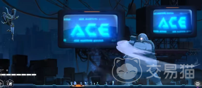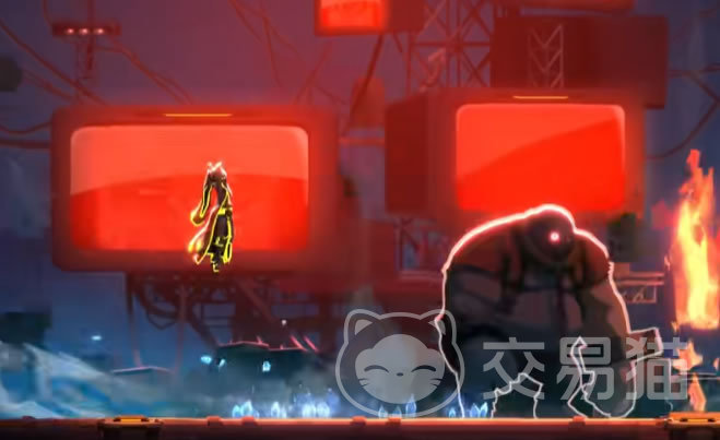在Boss被打至血量不足一半时,会发生狂化,此时背景场景都发生了变化,显示屏断电并反射出红色火光。而Boss的攻击速度也随之变快,尤其是将手放下之后的冲刺攻击,更是能够冲出很远的距离,所以一味拉开距离采用远距离攻击的方式并不能保证安全;还是需要根据Boss放下手时来预判进行躲避。因为这时候的Boss攻击伤害很高,是能打掉不少血的。不过他也没有特别可怕的攻击手段,在了解他的三板斧之后,大家应该可以轻松来回冲刺和跳跃击败他。