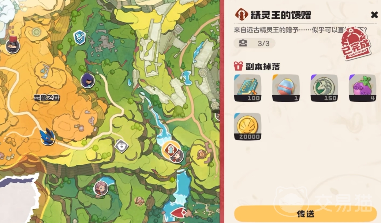 玩家想要获得这个宠物,可以前往精灵王遗迹进行获取。玩家打开地图,找到精灵王的馈赠这个传送点,通过传送就能前往精灵王遗迹了。这个传送点在地图中间位置,靠近梦兽之森,还是很好找的。