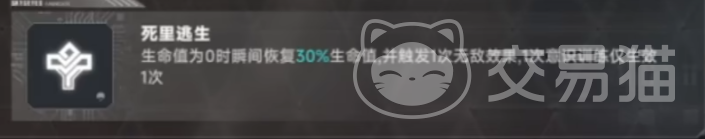 死里逃生是游戏前期一阶段的一个意识结晶效果,它的效果如同名称一样,可以让你在死亡时瞬间恢复百分之三十的生命值,相当于重生了一次,并且在触发之后还可以获得一次无敌的效果,还可以有一次意识的训练,不过触发之后只能生效一次哦。