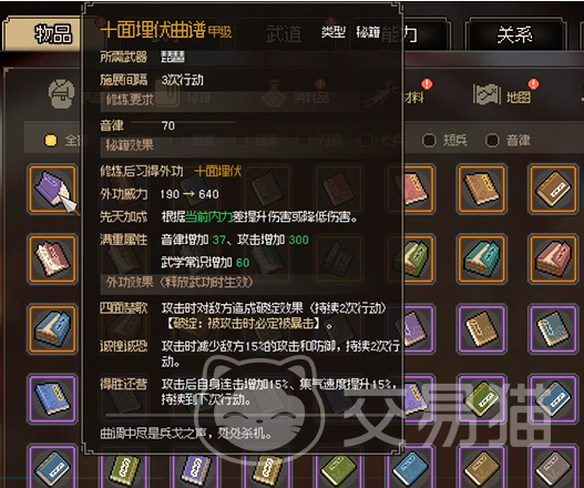 以上就是大侠立志传十面埋伏获取攻略的内容了。十面埋伏这门琵琶功法还是很值得玩家们去获取的。学会十面埋伏后,你的江湖之路将更加顺畅,无论是在单打独斗中威震四方,还是在与其他大侠的比拼中技压群雄,这门武功都将助你一臂之力。