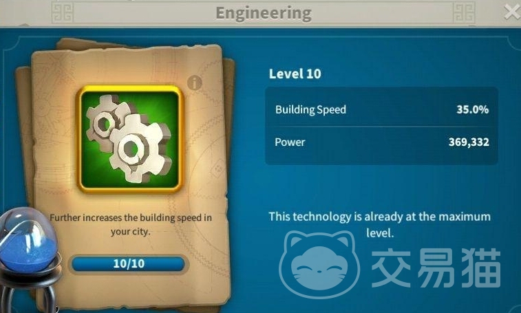 最开始要点的科技是建筑学。这个科技的具体效果是提升建筑建造速度的,这对城市快速发展非常有用。这个科技升满以后,可以给玩家带来百分之三十五的建造速度加成。然后科技石工术也能加快建筑建造速度,满加成将提升百分之十五的建造速度。把这两个科技点出来以后,玩家就能优先升级市政厅了,直接将市政厅升到8级。