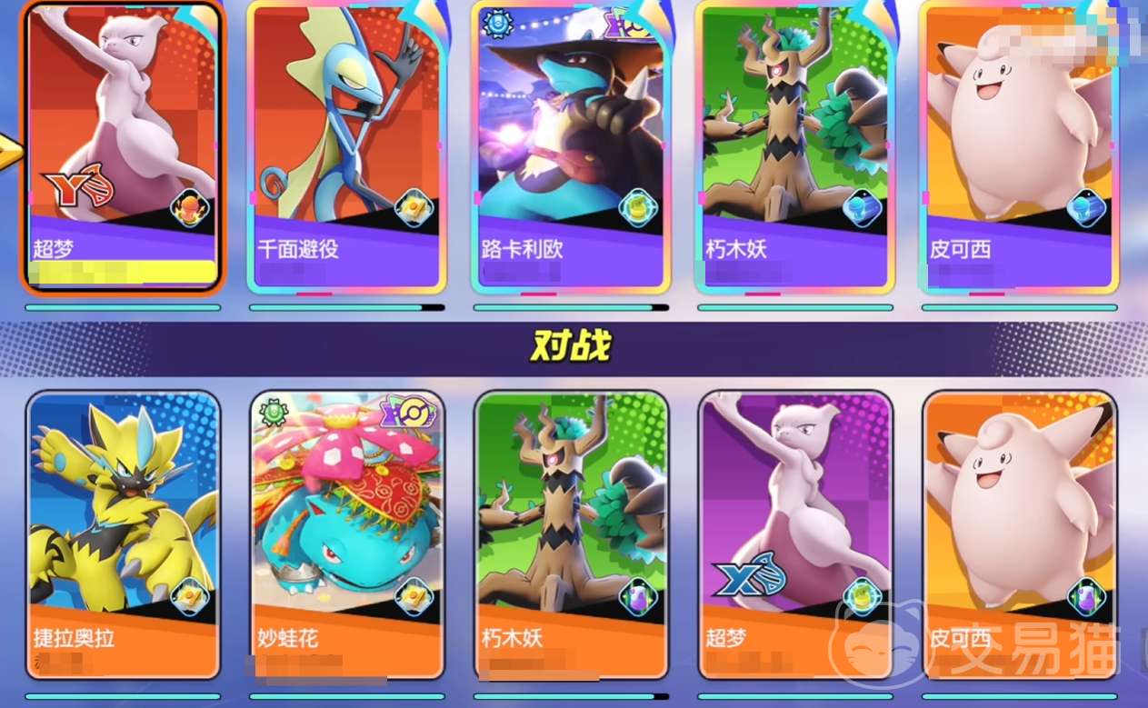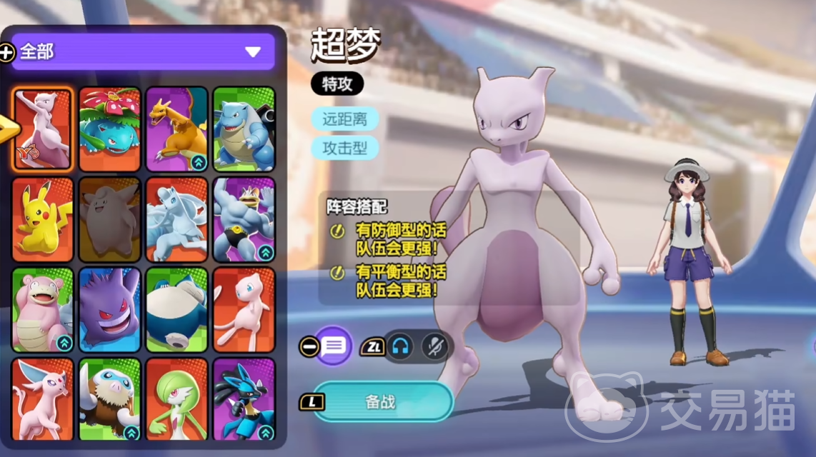 超梦作为超人气角色其人气度相当高,外形上超梦分为X与Y两种状态,数值基本相近但攻击方式不同。超梦X主打近战,综合属性强属于战士类型,操作难度低配装简单适合新手玩家入门体验,主打暴力输出不拼操作只拼数值,前期获得容易完成新手任务或商城用代币购买即可,属于前期人手必备的角色。而超梦Y更强调远程进攻,操作难度高但上限很高,伤害强劲但身板较为脆弱,主打远程风筝与拉扯玩法,喜欢发育与远程输出的玩家可以使用,对走位的练习很有帮助。