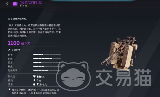 玩家可以搭配幽灵双管机枪,这一个机枪会拥有较好的效果,旋转的越多则意味着就可以形成更大的伤害。如果可以搭配在一起就可以形成巨额的伤害,虽然消耗比较多。