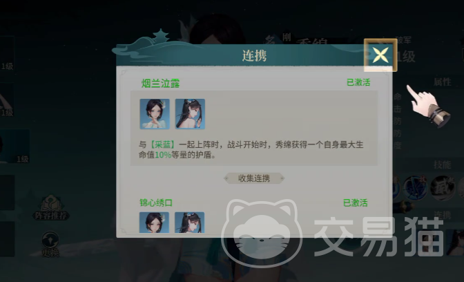 在朋友们在挑战成功后,可以选择让秀锦和采蓝并肩上阵。当这两位角色一同出战时,将能激活独特的【烟兰泣露】连携技能。比赛一开始,便会为秀锦生成一个基于其最大生命值的护盾效果,为她提供额外的保护!