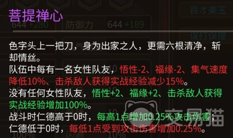 想要加入释法寺也是比较简单的,只要确认自己的仁德大于等0就可以了,然后找到掌门慧元,在与他完成对话之后即可加入释法寺。如果小伙伴们的仁德大于等于80,那么在和慧元对话的时候可以选择醍醐灌顶这个选项,如果你的悟性大于等于10,可以直接增加5000点实战经验,并且你队伍中所有悟性大于等于10的队友。也会增加5000经验。