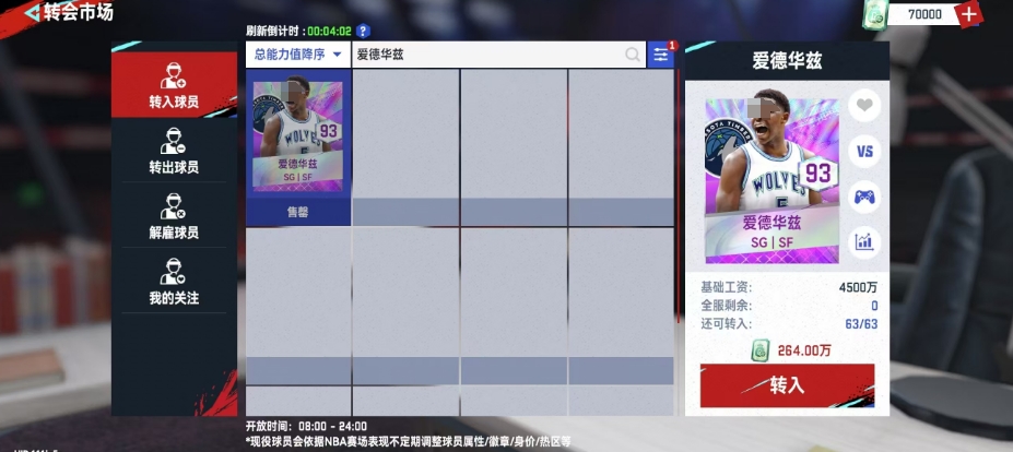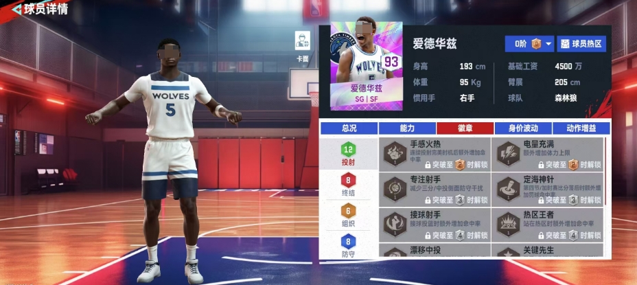 除了标志性的扣篮动作,爱德华兹还拥有专属的动作卡牌爱德华兹移动变向,使他能够在对手防守时找到更多的得分机会,这个动作的增益效果能够提升他的三分投篮表现,尤其是在完美三分概率上有所增加,当爱德华兹的三分能力达到98分时,这一动作增益将被解锁,从而让他的远程投射更加致命。