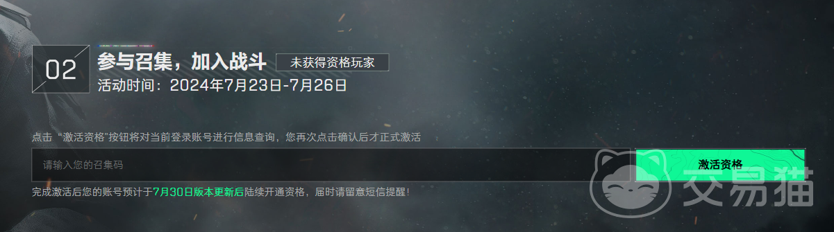 一旦你成功获取了召集码,可以前往活动页面,在指定的输入框中填入你的邀请码,点击“资格激活”按钮,即可顺利激活测试资格。需要特别提醒的是,召集码的有效期为从2024年7月23日至7月26日,请务必在此时间段内完成激活,以免错失良机。