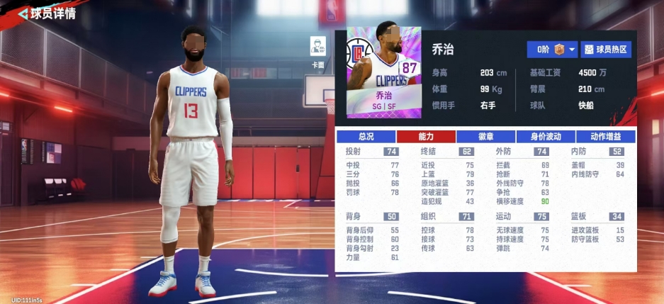 原本作为快船队的一员,乔治的横移速度事最大的优势,这个属性他有达到90分的基础属性数值,他的快速移动和敏捷反应,使得他在防守时能够迅速补位,阻挡对手的进攻路线,而在进攻时,他也能够利用自己的速度和灵活性,突破对手的防线,创造出得分机会,然而与他在运动和外防方面的优势相比,乔治在背身、篮板和防守篮板等方面的表现则相对较弱,他的背身能力只有50的数值,这意味着在低位单打时,他可能无法有效地利用自己的身体优势来获取得分机会。