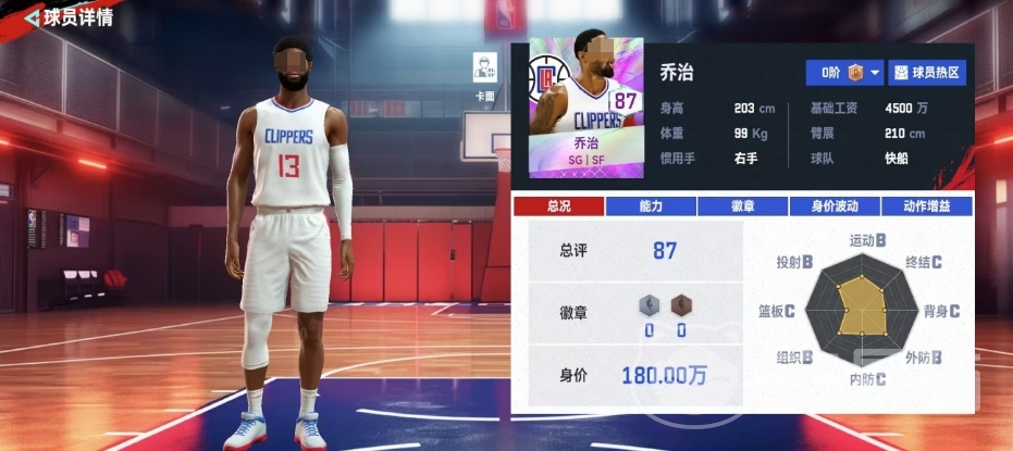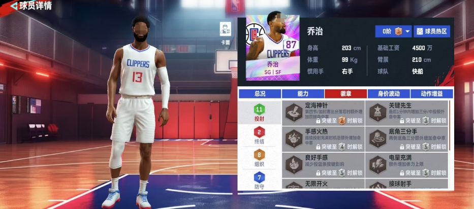 美职篮巅峰对决乔治球员介绍就到这里啦,乔治的徽章效果和专属动作让他在比赛中具备了更多的优势和可能性,他不仅可以利用自己的身高和臂展优势在进攻端轻松得分,还可以通过各种徽章效果和专属动作来提高自己的命中率和突破能力哦,所以小大家前期还是可以用他的。