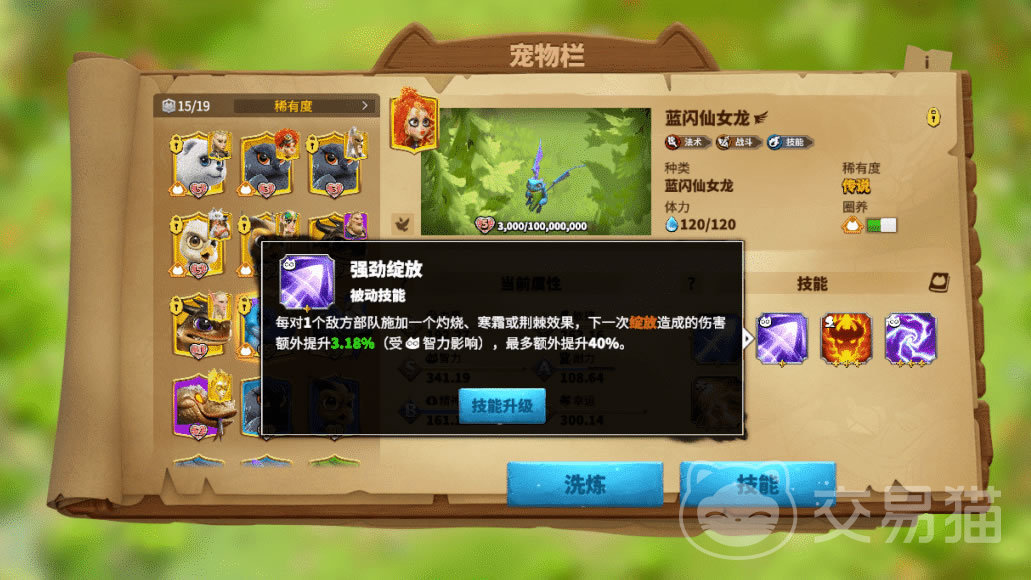 最适合莉莉娅携带的宠物是蓝闪仙女龙。三个核心技能都是魔法伤害,破坏力十足。尤其是核心被动技能强劲绽放,每次触发了莉莉娅的燃烧效果时,下一次的绽放技能会有额外的增伤,且能叠加提升至最大40%。