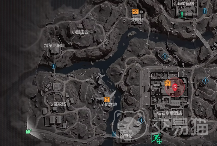 整个地图分成左中右三个区域,中侧区域的资源最多,在左侧区域好有小型庄园,加尔比旧址,还有坠机之地,相对来说这几个地点的资源都比较少如,如果想找医疗类型的资源,那可以去加尔比旧址,坠机之地里面是一些随机资源,小型庄园资源比较少,一般不建议玩家去这里探索。