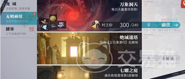 玩家只需要进入到无明画境,就可以找到万象洞天,然后去进行挑战,这就是一个秘境,在挑战完成之后,玩家就可以得到在养成过程中所需要的材料。当然伴随着剧情逐渐的推进,到了后期还可以解锁多种不一样的秘境,可以尽情的挑战。