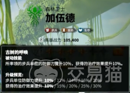 加伍德的天赋包括坦克生存系和主驻防系,相当于万国的双查天赋一样。加伍德的天赋使得他的出战率相对来说比较高,玩家可以搭配玛德琳这个角色来进行最强坦克出战,这样既有很强的生命能力提升团队作战能力还可以给角色减少伤害。