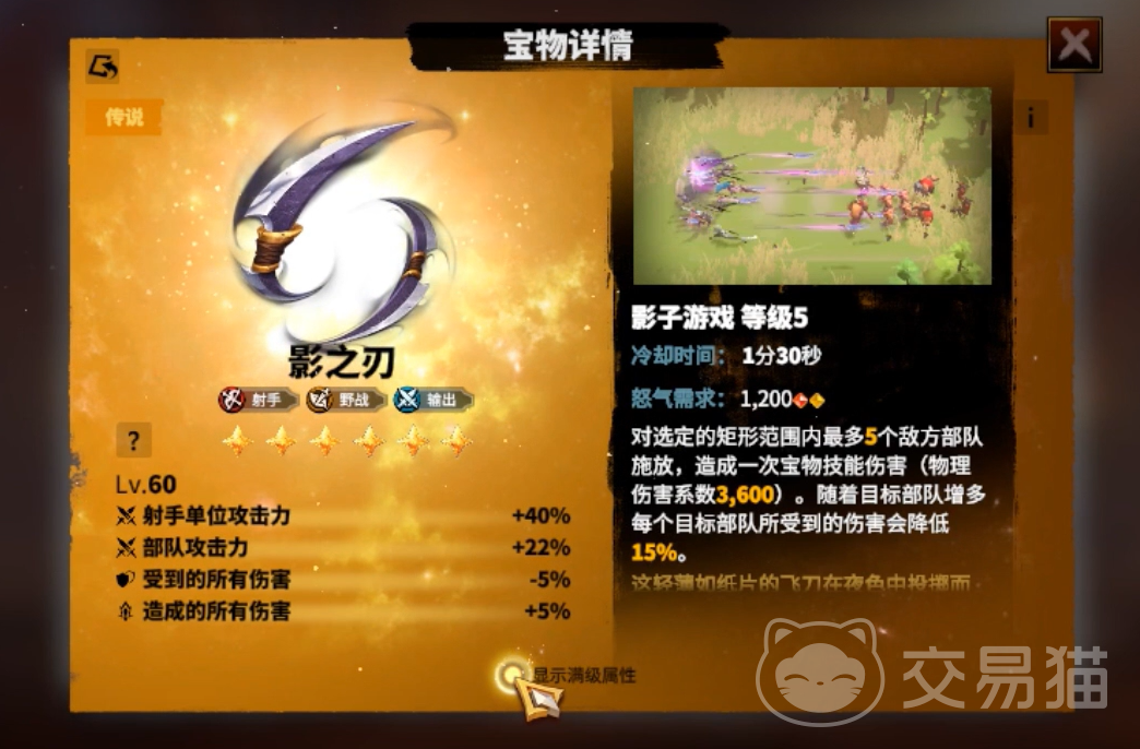 如果你是以弓兵为主力的玩家,那么影之刃就绝对不如你错过。除了本身非常出色的基础加成之外,技能的特效也是非常厉害的,影子游戏能够同时攻击对方的多名成员,造成有效的打击。这个技能有着超高的攻击系数,一旦命中脆皮,肯定会让敌手大吃苦头。