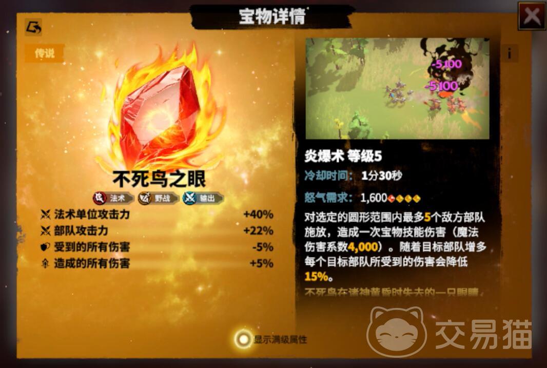 不死鸟之眼作为法师才能使用的宝物,属性可以说是非常优秀的。上至增伤,辅助下到减伤,主打的就是一个全面。并且,这个宝物还拥有炎爆术的招式,这个技能对怒气的要求很高,但是伤害也极度的可观。玩家可以将其装备给那些没有输出的法师角色,以弥补进攻方面的空缺。