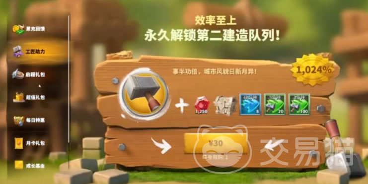除去VIP等级提升外,游戏还有很多的付费内容具有非常强大的帮助作用。比如工程助力,花费30元购买后不但能得到大量奖励;还可以永久额外解锁一个建造队列,此后建设发展速度远超普通玩家。