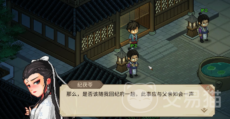 玩家需要帮助纪茯苓进行官差大战,战斗等级强化到25级后就可以成功触发剧情结局,获得缉拿归案。战斗胜利后玩家需要离开大凉城,在大地图当中前往荒郊位置就可触发纪家有女事件。在此时玩家和纪茯苓的关系会增加24个点。而此时玩家需要面临两个选择,一个是留下来照顾纪茯苓,这时的战斗强度就会增添到30等级,如果选择暂时离开,那么该事件就会搁置下来。