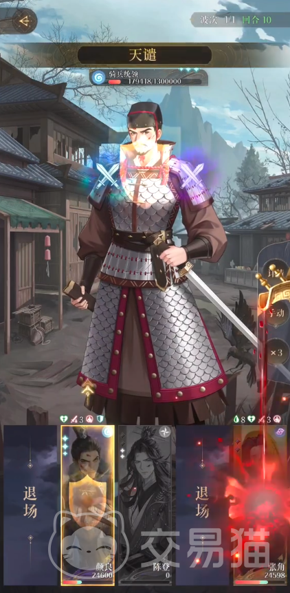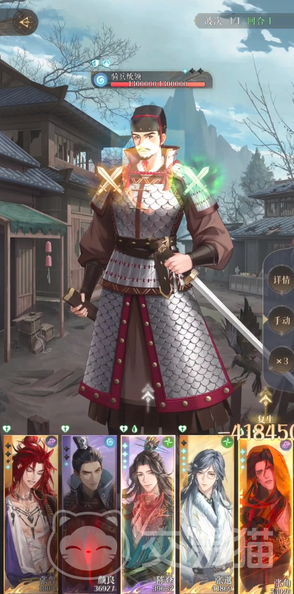 打法选择在开局让陈登拉满能量,接着顺序是张邈开大,全体平a一轮。第2~3回合张角开大,张鲁平a,其余三人下拉防御。前几回合主让陈登吃BOSS技能,张角可以不断死而后活。张鲁的二星天赋,前两次复活队友不会扣血,到第10回合,场上剩下盾与张角,此时放出技能和天赋与boss同归于尽即可通关。