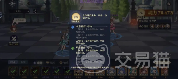 少年小舞 孟依然 少年唐三 尘心 邵鑫(小奥) 宁荣荣:为何要如此搭配?主要是在这种搭配之后,玩家就可以获得9%的阵容增益。在阵容中尘心是一个主c角色,增生之后的普通攻击伤害和生命值有较大的关系,因此就应该选择宁荣荣,这一个角色就可以叠加队友的生命值。