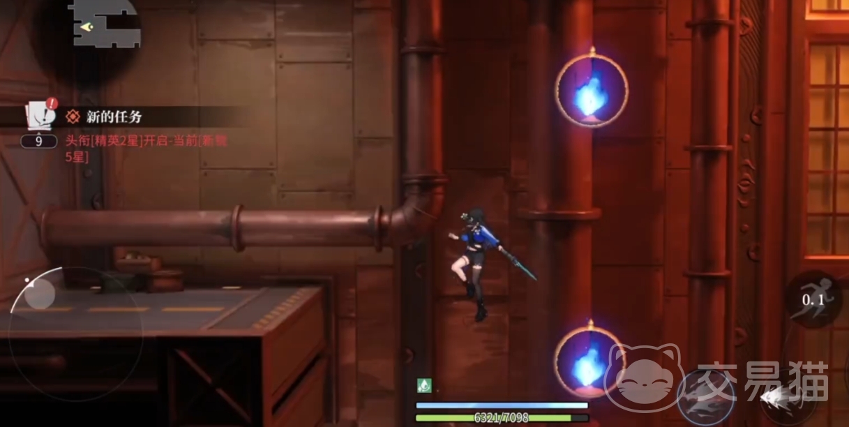 在任务的最后阶段,大家只需去打开升降机开关,利用小跳跃接翻跟头触碰蓝火,这个间隔大约是在两秒左右,再进行冲刺和跳跃,重复三次就能顺利的到达最高处,最后冲刺闪避控制距离,就能成功的到达终点了。
