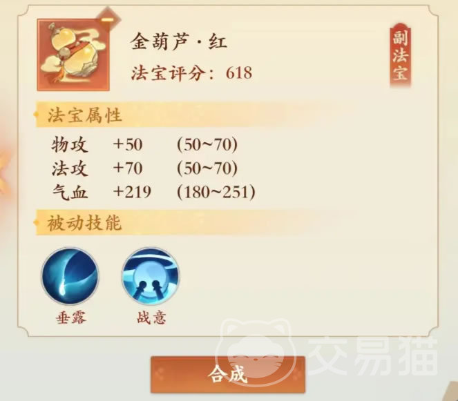 封神幻想世界游戏中有不少法宝的存在,这些法宝都是在封神演义小说中赫赫有名的存在,比如番天印、风火轮、浑元伞等等。不过其中有个金葫芦,却不知道是原书中谁的法宝;那么封神幻想世界金葫芦怎么样呢?其实在游戏中金葫芦算是一种辅助型法宝,除了增加基础值之外,是没有直接攻击能力的。