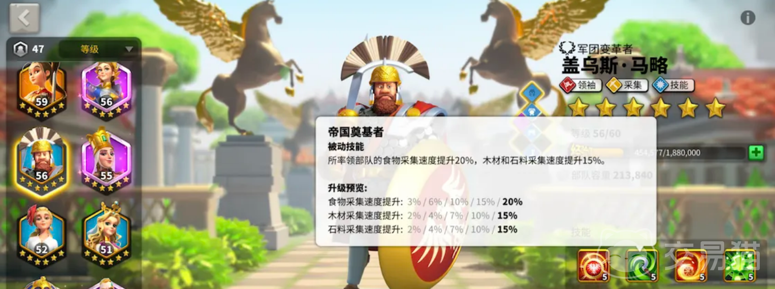 不过队伍之间的搭配是要看玩家所要拥有的阵容类型,如果玩家在游戏过程中对食物资源的需求较大的话,推荐玩家搭配盖乌斯。他所携带的技能和能力能够在玩家采集食物的时候有20%的加成,其余资源采集的加成比较弱,只有15%,但是如果对于一个联盟的发展的华还是比较推荐他。