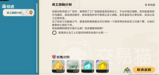 洛克王国手游当中员工奖励计划实则是一个支线剧情,主角与npc角色进行对话,剧情当中所讲述的是工作过程中的各种问题,作为主角的你,寻找到npc霍曼尼要请假。但npc并不允许,表示这个月产量已经远远落后,如果继续这样下去,那么会遭受到厂长的责怪。