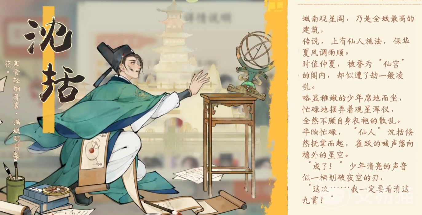 第一个是沈括,他是历史上非常有名的一位科学家以及政治家,沈括在游戏中适用于建筑建造和工业类的资源生产,并且在新建筑的建造和升级方面还可以减少材料的消耗,并且还有概率可以让建筑物立即建造完成。