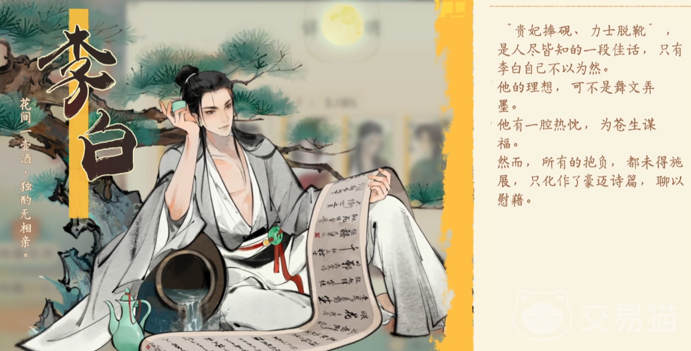 第六位是李白,他被称为诗仙,也是唐代最著名的诗人之一,李白的人生故事是很多人都知晓的,他的诗篇也被广为传颂。李白在游戏中适用于驿站游历,秘境和食物类资源的烹饪,他的能力是在参加秘境玩法时,可以在消耗体力之后返还一个体力,并且还有概率获得双倍的秘境奖励。